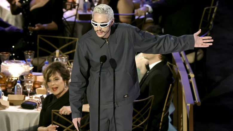 Davidson's appearance at the Emmy Awards this Monday came as a surprise to many, as his presentation of the award for outstanding comedy series to "Ted Lasso ” was unannounced (via E! Online). And although fans were excited to see the comedian take the stage, they saw some Kimye inspiration in his outfit for the night.
