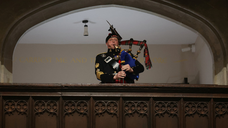 As noted by The Sun, King Charles III recently appointed the Queen's funeral piper, Pipe Major Paul Burns, as his personal piper. Burns gained notoriety for his striking rendition of Sleep Dearie Sleep while closing Queen Elizabeth II's state funeral. According to the outlet, Burns officially began his new role in early October 2022. Regarding the announcement, a source told the write-up that they were pleased that the tradition would continue. They also stated that the King was very impressed by Burn's performance at his mother's funeral. However, it sounds like one part of this custom might get altered; as the insider noted, "The tradition is for it to happen at 9am. But the King is always awake much earlier."