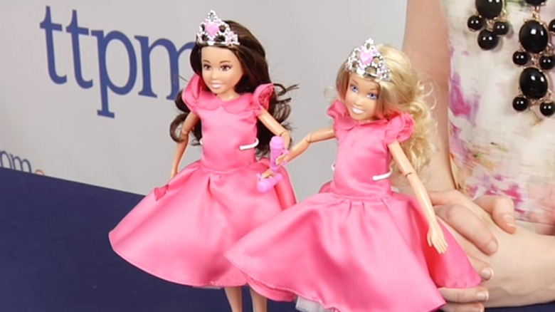 In 2014, Sophie Grace Brownlee and her cousin Rosie McClelland teamed up with Just Play to launch their very own singing dolls. The dolls wore fluffy pink dresses and tiaras — as seen on their viral appearance on "The Ellen DeGeneres Show." When a button was pressed, Sophia Grace sang "Super Bass," the song that first helped the girls go viral. The dolls also came with socks, shoes, a hairbrush, and a microphone.