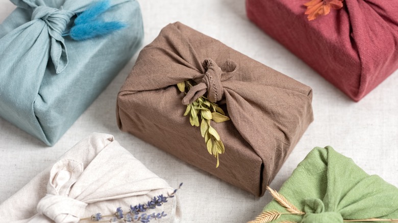 Living a low-impact life doesn't mean you have to give up wrapping gifts — and certainly not presents. However, an eco-friendly lifestyle does ask you to consider the waste you create when you do give gifts. Wrapping paper is a $7 billion industry in the United States alone (via Popular Science), and buying new wrapping paper that quickly ends up in a landfill only adds to the problem. By 2025, 10% of greenhouse gas emissions will come from landfills (via Active Sustainability), meaning that the wrapping paper you toss out on Christmas morning might actually help contribute to global warming — not so merry after all.