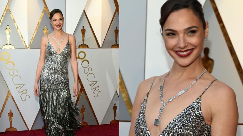 However, Gadot's jewels are what really made her outfit shine. According to Vogue, the incredible diamond and aquamarine necklace worn by the stunning starlet is a handcrafted Tiffany & Co. piece featuring 17 aquamarines and over a thousand diamonds. It's no wonder why all eyes were on Gadot throughout the evening.