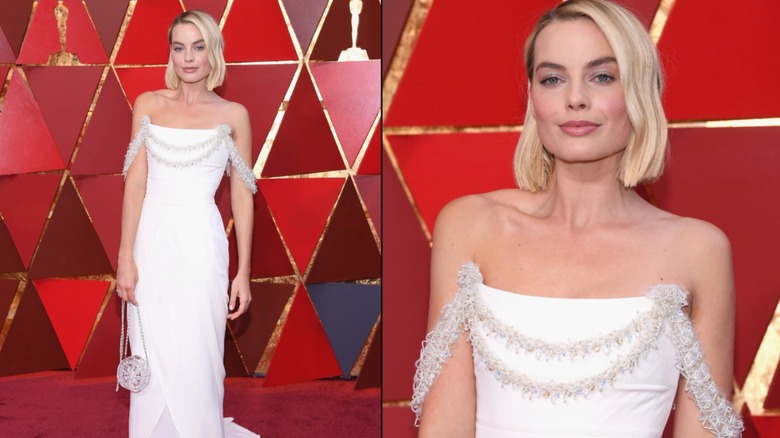 Kate Young, Robbie's friend and stylist, spoke with Vogue regarding the process of choosing the charming Chanel number for Robbie's biggest night of the year. "I wanted it to be couture, the most fancy and luxurious, but also cool," said Young. She continued, noting that the plastic material of Robbie's handbag helped to keep the classic Chanel ensemble modern. Other than a small pair of diamond earrings, Robbie and Young opted to keep the jewels at a minimum and let the gown speak for itself — and speak, it did.