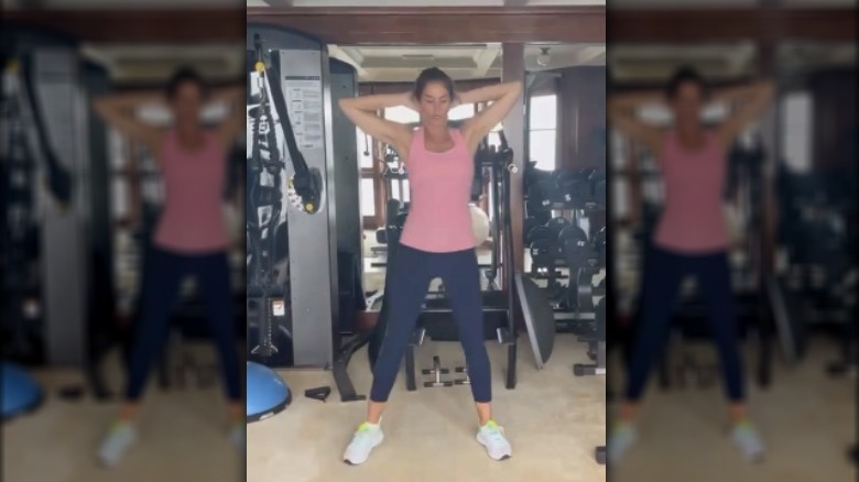 The supermodel shared with Shape magazine that she and Sarah Perla Hagaman do twice as much weight training. "We repeat the 10-minute weight and five-minute cardio at least three times and then we finish up with abs and stretching" (via Marie Claire). Crawford focuses on a thorough full-body workout and it is clearly effective. Just scroll down her Instagram page if you don't believe us. For specifics, Crawford shared, "We do circuit training for the whole body using weights, some machines, and my own body weight with lunges and squats." You can mimic Crawford's routine wherever you are. And we have the tips and tricks for just that.