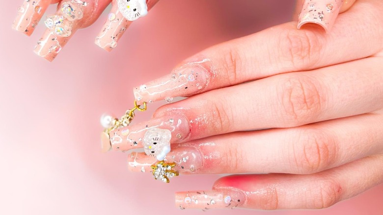 Pierced nails with charms are darling