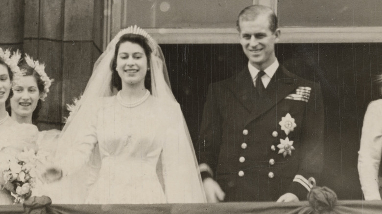 The dress — a beautiful silk satin gown in ivory — was adorned with 10,000 pearls and delicately embossed with orange blossom and star lily embroidery. It took seven weeks to make and cost about $37,000 at the time, but it was the aforementioned embroidered details that spoke louder than words. Orange blossoms and lilies were, as noted by the Royal Collection Trust, Elizabeth's way of representing the awakened spirit of Britain after World War II, symbolizing a new beginning not only for her and Philip but for the country as well.