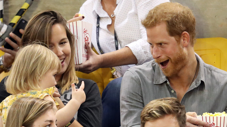 Not many would dare to steal Prince Harry's popcorn. A 2-year-old was brave enough to carry out this heist in broad daylight amid a host of cameras pointed at her at the Invictus Games in 2017. To the world's delight, Harry didn't just share his snack with the toddler, Emily Henson, but also kept her humored through the entire event. The Paralympic games — founded by Harry for military vets — marked his first public outing with his girlfriend Meghan Markle.