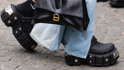 In fall 2018, Balenciaga released its first partnership with Crocs. Since then, the fashion house has been releasing its own luxury take on the rubber shoe, converting them into boots, heels, and "HardCrocs." Constructed with rubber and featuring a 10-millimeter arch, as well as a 110-millimeter silver-studded platform, the HardCroc pays homage to its predecessors yet shines as something all its own. The Balenciaga logo is debossed on both the strap and silver studs, and in a sleek black color raised on platforms, the HardCrocs are the most stylish of their Crocs counterparts.