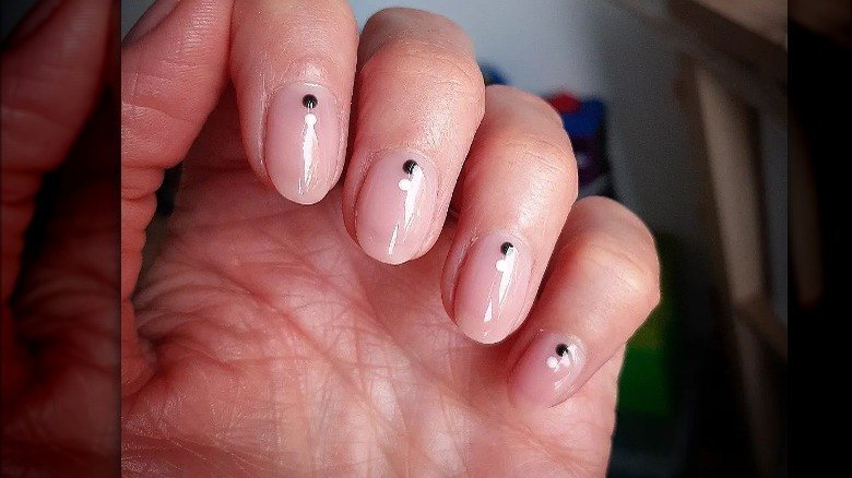 After trying trends like rhinestones, glitter, and all the glam you could possibly imagine, it might be time to take your nails back into more minimalistic territory. The bubble gloss nail style gives you a hint of glam but doesn't go overboard. If you still need a little something extra to make your nails feel complete, you might add a little flourish, like a dot or two at the base of the nail itself. The contrasting black and white really draw the eye to let everyone enjoy the beautiful, iridescent glow this style creates.
