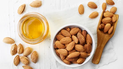 Almond oil calms inflammation, reduces stretch marks and scarring, and fights UV damage