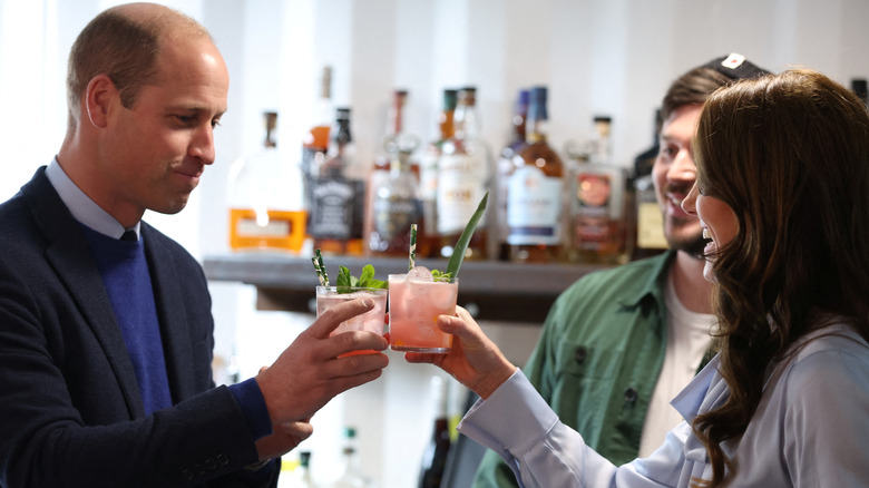 If the whole heir to the throne thing doesn't work out, it looks like the Prince and Princess of Wales might be able to land a job at the local pub. While on a visit to Northern Ireland in 2022, the two mixed it up when they jumped behind a local bar at the Trademarket outdoor market in Belfast to take a shot at cocktail mixing. The race was on as the pair mixed, muddled, shook, and sipped the final pretty, pink (possibly potent) product.