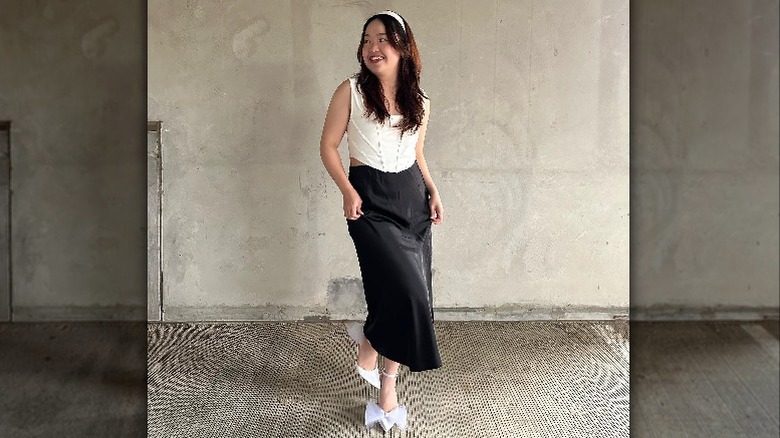 So, how do we style the kitten heel for summer? Combine it with another trend, of course. Preppy looks are "in" these days with more whimsy and uniqueness than before. To lean into this look, the kitten heels and maxi skirt combo is the way to go. "For [complementing] a longer hemline look, 91 percent of our stylists predict that low heels will dominate women's shoes," stylist Gillian McHattie told Marie Claire. "There are endless patterns, silhouettes, and styles" for maxi skirts, she said, adding, "For clients looking for an effortless and chic work outfit, a maxi skirt is top of my list ... I'm loving the resurgence of laidback, 70s-inspired maxi skirts, especially with the new release of the Daisy Jones & The Six series." It's clear that there are more than a few ways to nail this combo, and we've got 'em all.