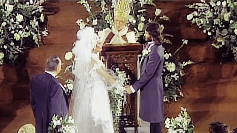 In 1985, "Days of Our Lives" fans finally got to see Bo and Hope walk down the aisle together in a lavish wedding ceremony. During a time when the couple was helping the ISA bust a criminal known as Dragon, who was plotting to kill members of the British royal family, the pair stopped a character named Lady Joanna from being murdered. The royal family was so grateful for Bo and Hope's assistance in the situation that they offered to give them an elegant royal wedding ceremony that fans will likely never forget, per Soap Digest.