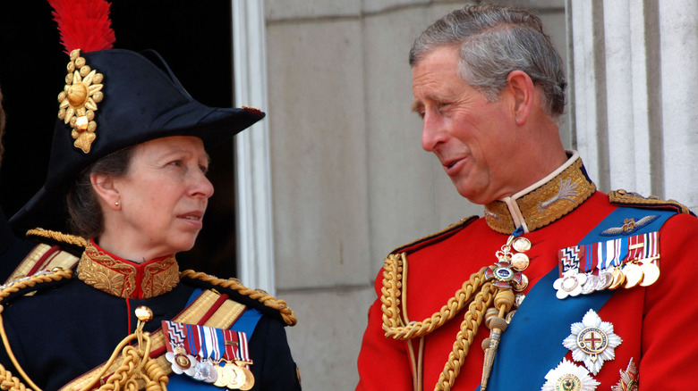 Anne more than held her own with her big brother. She even said once that they "fought like cats and dogs" when they were little, as reported by Express. But as adults and as they began to take on their individual work as members of the royal family, the two seem to have put the fighting behind them, and Charles and Anne now have a close relationship. After all, there are few others in the world who can understand what it's like to be a child of the monarch of the United Kingdom and work in the royal family. That closeness was on display at a Buckingham Palace ceremony a few days before the 2023 Trooping the Colour.
