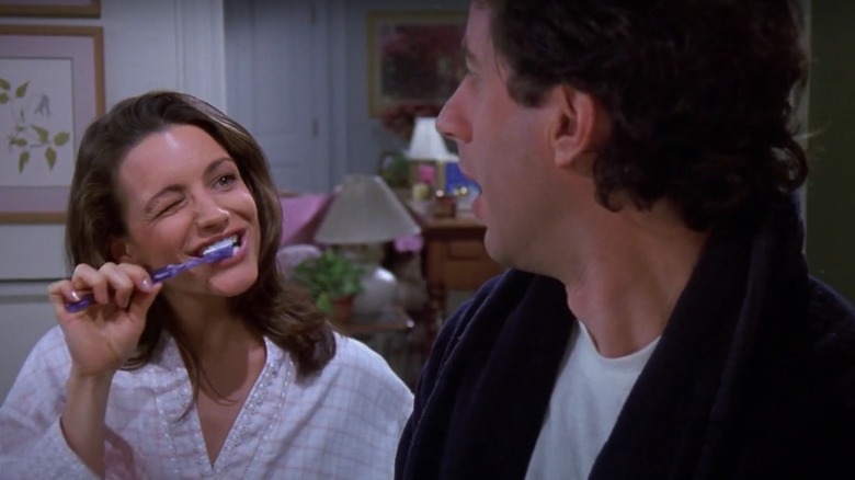 A year before she landed the role of Charlotte in "Sex and the City," Kristin Davis was already making her mark on the comedy landscape. In the Season 8 "Seinfeld" episode "The Pothole," she played the infamous toothbrush girl, i.e., Jenna, Jerry's girlfriend who uses a toothbrush that has landed in the toilet.