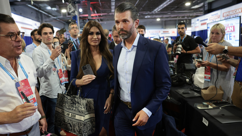 Don Jr., who's become famous for platforming conspiracy theories on his "Triggered" podcast, was married to Vanessa Trump (formerly Vanessa Hayden) from 2005 until their divorce in 2018. "After 12 years of marriage, we have decided to go our separate ways... We have five beautiful children together and they remain our top priority," the couple said in a joint statement at the time, per CBS. As Vanessa once told The New York Times, it was Donald Trump Sr. who introduced her to her husband... twice. "I'm at this fashion show," the former model remembered, continuing, "Donald Trump comes up to me with his son: 'Hi, I'm Donald Trump. I wanted to introduce you to my son Donald Trump Jr.'" In some cases, it helps to have a playboy father as your wingman.