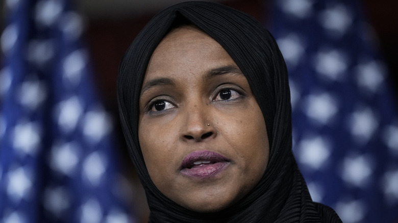 In 2021, a video surfaced of Lauren Boebert discussing a moment at the Capitol when she was getting into an elevator and saw an officer of the Capitol Police heading for the elevator she was in, looking concerned (via Reuters). She said for a moment she was afraid of what might be going on and whether she was in danger, and then, as she put it, "I look to my left, and there she is. Ilhan Omar. And I said, 'Well, she doesn't have a backpack, we should be fine,'" said Boebert, making a reference to Muslim terrorists — Democratic U.S. Representative Ilhan Omar is a Muslim. And if there had been even an ounce of doubt about what Boebert was insinuating, she then said that being on the elevator with her colleague was "not my first 'jihad squad' moment."