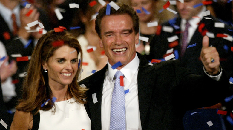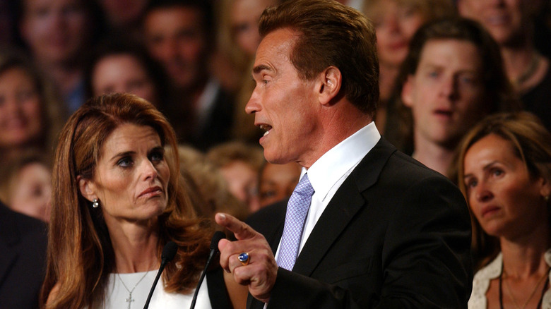 While facing allegations of being a womanizer, the actor turned to his wife, Maria Shriver to save his campaign. Shriver appeared at multiple rallies and passionately defended her husband's character. Friends and colleagues were shocked by her public role in his campaign. Per the New York Times, they expected her to keep a low profile. Instead, Shriver played a key role and helped target female voters for her husband's campaign. "You can listen to all the negativity, and you can listen to people who have never met Arnold, or who met him for five seconds 30 years ago. Or you can listen to me," she said in a speech to Republican women (via CNN). "I wouldn't be standing here if this man weren't an A-plus human being."