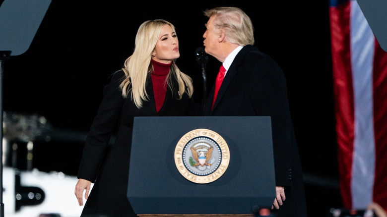 Social ruin is relative, right? While Ivanka Trump and Jared Kushner may no longer be welcome within some elite circles, they continue to meet with many of their longtime friends — even the ones who disagree with their political views. One of the clearest examples of this dynamic is Ivanka's friendship with Kim Kardashian, who supported Democratic presidential candidates over Donald Trump in both 2016 and 2020. Although Ivanka and Kim don't necessarily see eye to eye on many major issues, the pair have run in the same circles. In 2023, Ivanka was even spotted at Kim's birthday party wearing a shimmering white two-piece ensemble.