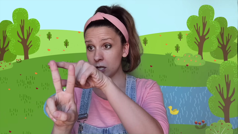As the countless Ms. Rachel Halloween costumes in the past few years have shown us, Ms. Rachel's overalls, pink shirt, and pink headband are iconic and immediately recognizable. While early "Songs for Littles" videos occasionally show Ms. Rachel in a different color shirt or headband, pink is certainly her most common look. While the outfit has become practically synonymous with Ms. Rachel, that wasn't the YouTube star's intent. In fact, the key elements of the outfit were mostly born out of necessity.