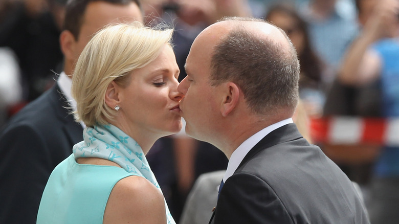 While Prince William and Princess Catherine's wedding will certainly be remembered as the main event in 2011 for years to come, as previously noted, there was another major royal wedding that year. Prince Albert and Princess Charlene married in Monaco's biggest royal wedding ceremony since Prince Rainier III and Grace Kelly exchanged vows. In a culmination of events, a sacred ceremony unfolded on July 2, 2011, where Charlene adorned herself in an exquisite off-the-shoulder Armani Prive gown adorned with an astonishing 40,000 Swarovski crystals. This momentous occasion drew the presence of a wide variety of celebrities including fashion designer Giorgio Armani, model Naomi Campbell, and members of the British royal family, including the Earl and Countess of Wessex, and Prince and Princess Michael of Kent. But it was the arguably awkward and stiff kiss shared between the couple on what should have been the most romantic day of their lives that raised eyebrows among viewers everywhere.
