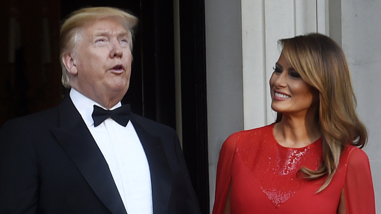 During a 2018 visit to France, Melania Trump attended a dinner sporting a tuxedo made by Dior. While Melania was often criticized during her time in office for neglecting to wear American designers, the label had nothing to do with why people were in a tizzy about this particular look. As a number of critics noted, Melania's tuxedo look was awfully similar to what Donald Trump's former communications director Hope Hicks had worn in Japan a year prior. "She's trying for the Hope Hicks look," one X user wrote. "Despite a lovely figure,wealth,access to best stylists and designers,she misses the mark. Her choices are inappropriate to the context, costume-y, slightly trashy," another said.
