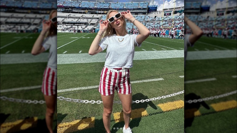 What could be more fitting than this sporty 'fit? In September 2023, Brittany Mahomes picked out a game day outfit that screamed all-American football supporter — in other words, the perfect getup for cheering on your football star husband.