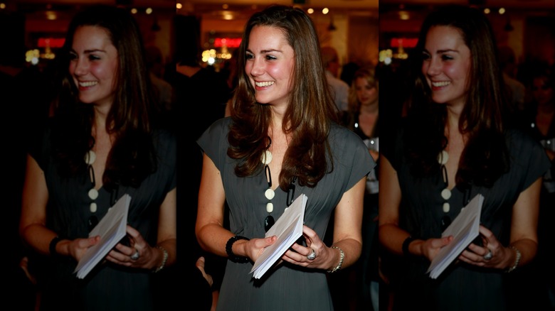 Even in the earliest days of Princess Catherine's relationship with Prince William, she wore her chocolate-colored mane in a bouncy blowout. The couple met at the University of St Andrews in 2001, and they were initially nothing more than friends. Their dynamic took a romantic turn in 2002 after William saw Catherine walk the runway in a college fashion show titled "The Art of Seduction" — for which she wore a sheer slip dress that gave a peek at her black bandeau and briefs beneath.