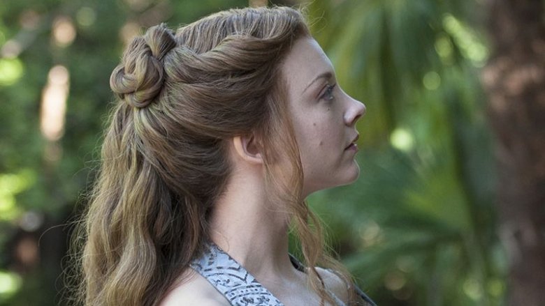 As Margaery gained more power, the designer explained to Time, her hair became progressively intricate, culminating in a wedding hairdo that was "completely over the top." Her wedding hair was cool, for sure, but it's a lot easier to pull off one of her more subtle looks, like the delicate half-up, half-down twisted style.