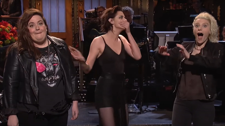 In 2017, "Twilight" actor Kristen Stewart made her hosting debut on "SNL." During her monologue, Stewart charmed viewers with her famously coy persona and joked that she was "too cool for school." The bit featured appearances from "SNL" stars Kate McKinnon and Aidy Bryant, who wanted to prove they were also "too cool for school." But just before walking off stage, Stewart fired off an accidental F-bomb.