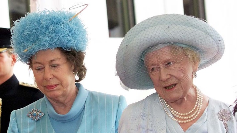 Tragically, the Queen Mother died shortly after her youngest daughter on March 30, 2002. She attended Margaret's funeral despite her poor health. As Prince Harry wrote in "Spare," "Granny tried to talk Gan-Gan out of attending the funeral. But Gan-Gan dragged herself out of her sickbed, and shortly after that day took a bad fall." The Queen Mother never fully recovered, dying several weeks later at the age of 101. Losing both her sister and her mother in such a short period of time was undoubtedly trying for the queen.