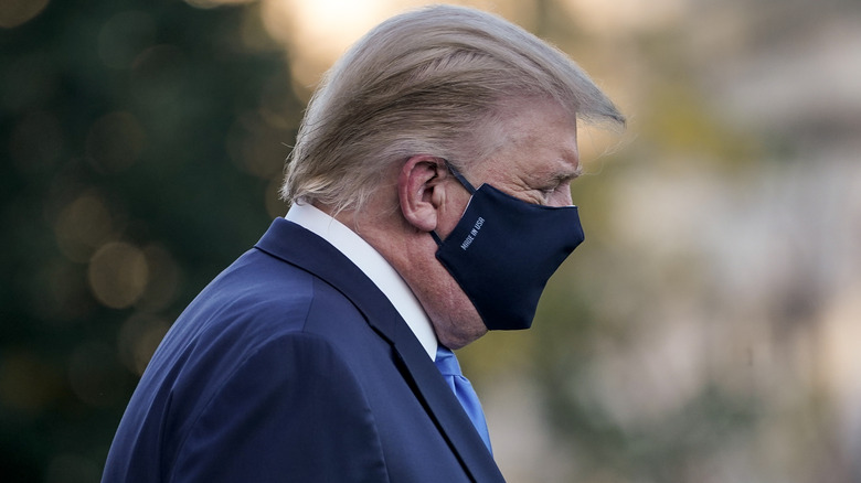 During his final presidential term in 2020, Donald Trump's hair became a washed-out ashy color. It also grew a tad longer, fashioned into a bizarre proto-mullet. According to experts who chatted to Vogue, Trump likely didn't embrace the gray of his own volition. "Trump is loath to change his physical appearance, so he likely listened to his aides who told him he needed to do something dramatic," explained historian Alexis Coe.