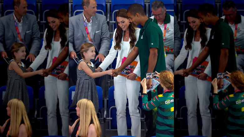 In August 2022, Princess Charlotte attended the Commonwealth Games with Princess Catherine and Prince William, while her two brothers stayed home. Watching a swimming competition at the Sandwell Aquatics Centre, she seemed to enjoy the one-on-one time with her parents. The young royal was very expressive at the event, showing animated body language that indicated her enthusiastic investment. Charlotte was even spotted shaking hands with swimmer Warren Lawrence in an adorable display of sophistication and maturity.