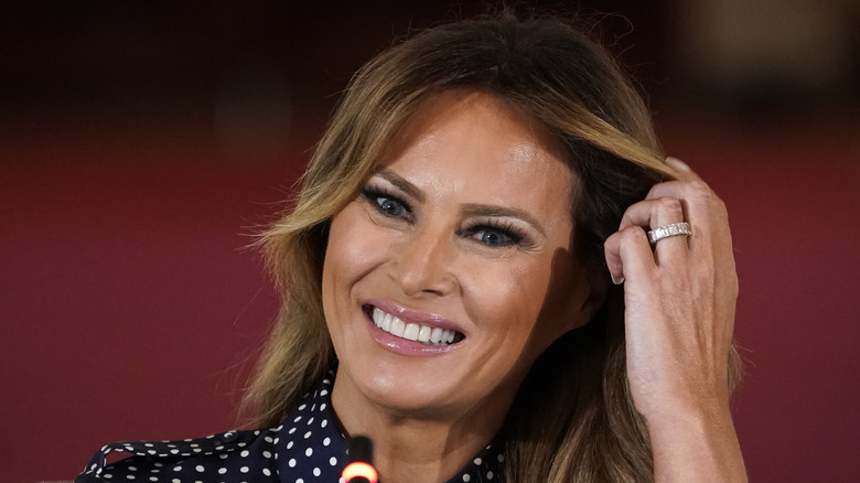 Melania Trump's stunning transformation from a humble kid in the former Yugoslavia to first lady of the United States of America is perhaps one of the most unique stories in American history. Not many other White House inhabitants can say they met their husband and future president of the United States in a New York City nightclub, but that's exactly where the lore of Melania and Donald Trump's marriage begins. And while she is the former president's third wife, not much is known about Melania's relationship history before Donald. After five years of dating, the happy couple were engaged in 2004. And considering Donald's billionaire businessman status, the engagement ring became the first of many of Melania's iconic jewelry pieces over the years.