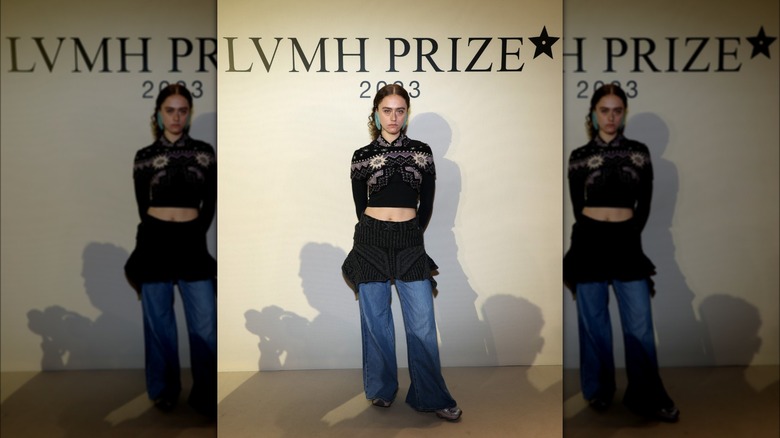 If worn over jeans, the outfit instantly takes on a Y2K vibe, which is exactly what Ella Emhoff's LVMH Prize ensemble was giving. Unfortunately, the model's rendition of the trend was looking quite outdated, and since the top was working for her, a different choice of pants underneath her skirt could have really saved the look.