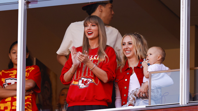 One of Taylor Swift's coolest game day looks came in December 2023 when she opted for a laid back '90s vintage Kansas City Chiefs sweatshirt. This sweatshirt, with its red and black design and giant black lettering reading "Chiefs" was a little more unusual than some of the other Chiefs branded merchandise often on display in Swift's suite.