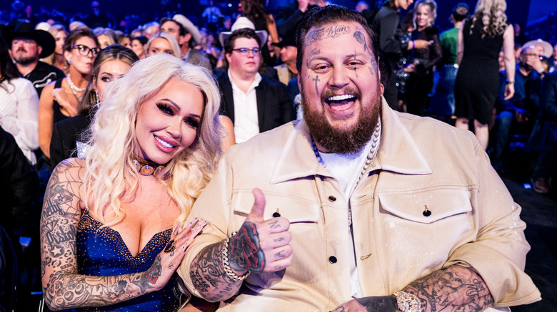 If you're a loyal "Dumb Blonde" podcast listener, then you know Jelly Roll and Bunnie XO not only have an open relationship, but don't worry about who might be sliding into each other's DMs. As Jelly Roll said on "Taste of Country Nights on Demand" in 2024, "We just don't live in that world of unnecessary jealousy." And yet, when Bunnie XO met one of her "hall passes," Chris "Motionless" Cerulli of the metal band Motionless In White, it sparked some drama among fans. In April 2024, she shared the moment she got to shake hands with Cerulli before a concert on TikTok. She also made a suggestive gesture while she watched him perform. Alongside the video, she wrote, "you could say we're in love now."