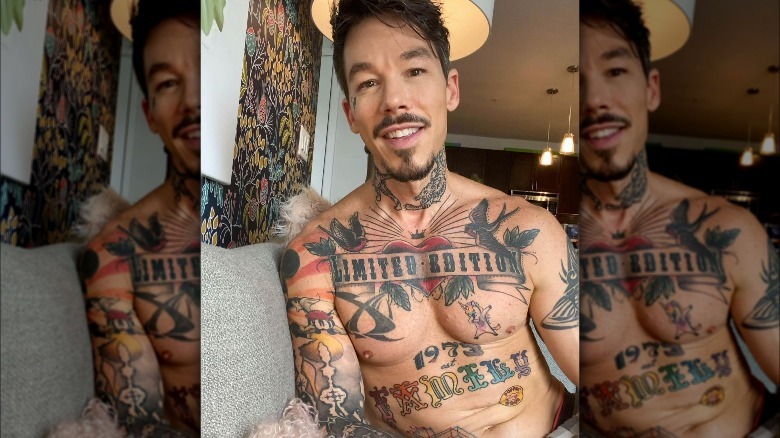 Off duty, however, Bromstad's often makeup free, and the biggest difference in his look is the reveal of two tattoos on his cheek bone. Birthday photos that Bromstad posted on Instagram in 2020 and 2021 shows a lightning bolt tattoo and a diminutive heart tattoo above it. "Tattoos are a beautiful, brilliant way of expressing yourself," Bromstad enthused to Hart and Huntington Orlando. "I literally stay up at night thinking and researching what I can do next." Besides engaging his artistic sensibilities, Bromstad makes a point to choose designs that are personally significant to him, including pop culture tattoos that celebrate his connection to Disney.