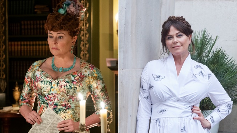 While watching "Bridgerton," you might have recognized the actor playing Lady Featherington from somewhere but couldn't quite place where. The actor Polly Walker has had a long career and is known for many roles, such as Annette in "Patriot Games" and Atia of the Julii in "Rome." However, you likely didn't recognize her because she looks so different in "Bridgerton." Lady Featherington is one of the loudest dressers on the show; she always has a garishly colored gown and plenty of gaudy jewelry. Her red hair is also done in elaborate updos with stiff curls. It's a big difference from the simpler and more relaxed look the actor presents in her daily life.