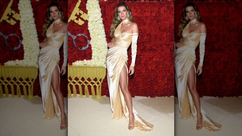Gisele Bündchen and husband Tom Brady (married from 2009 to 2022) were stalwarts on the annual Met Gala red carpet. You could always expect the dashing couple to grace the event with their presence. To onlookers, it appeared that their goal wasn't to make waves with outlandish outfits (unlike other gala goers, such as Katy Perry, a Met mainstay that always goes OTT on the theme); this golden duo strove to look flawless. The 2018 event was no exception. Bündchen wore gold Versace with a high slit up to the thigh. (To coincide with the model's eco-friendly desires, the gown was organic.) Naturally, she landed on plenty of best dressed lists. And did she hit the brief with the theme, which was Heavenly Bodies: Fashion and the Catholic Imagination? She nailed the heavenly body part, at least.