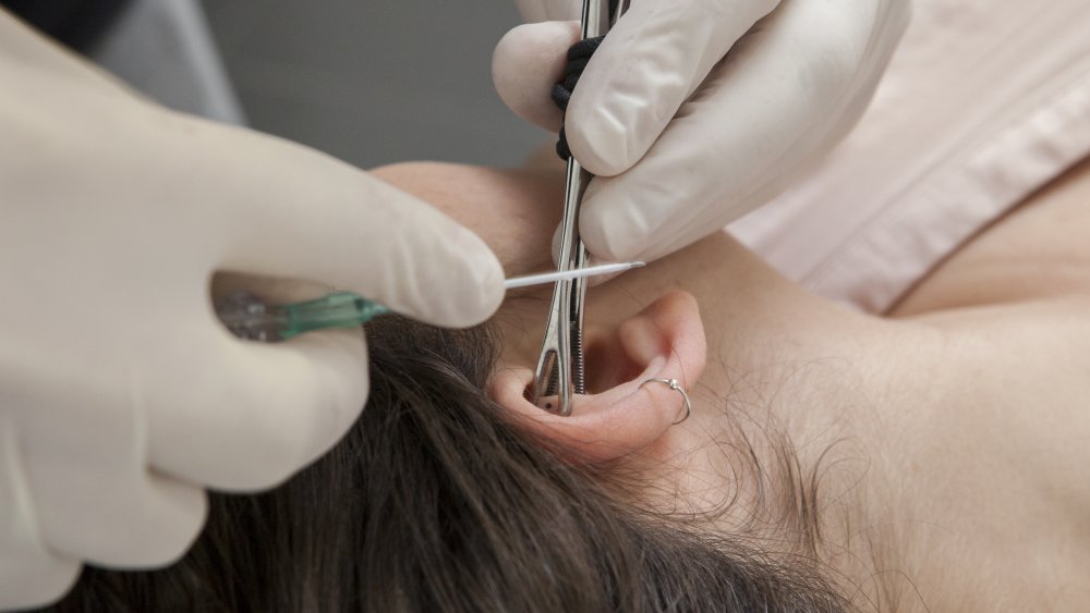 According to Healthline, your piercer will first take a look at your ear to determine whether or not your ear is a good fit for this kind of piercing. They'll then mark the spot where they're going to pierce and check in with you to see if you want to move it or not. Don't be afraid to speak up and ask them to move it! You'll be stuck with this piercing for a long time, so you have a say in where it should go.