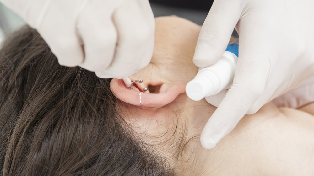 The rook is in a very particular spot above the daith. It can be a delicate spot to pierce, so the piercing can take six to nine months to heal, depending on how diligent you are in your post-piercing care. London-based piercer Rhianna Jones told Byrdie, "It is always advisable to try to avoid sleeping on any new ear piercing until fully healed as it can cause problems and delay the healing." To keep it healthy, clean it regularly (and carefully) and don't remove it, even temporarily (via Bustle). She also recommends a titanium or 18-carat gold bar for the initial healing period (it's also what she offers her clients).