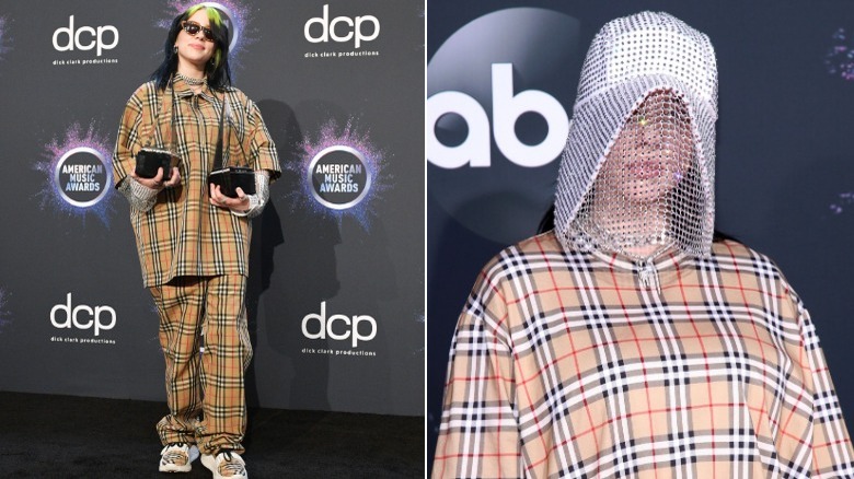 Plus, Eilish's outfits are consistently super stylish. Take, for example, the best dressed celeb's custom, tan plaid outfit from Burberry at the 2019 AMAs (via Elle), complete with matching sneakers and a one-of-a-kind beekeeper-like hat, easily one of the freshest looks at the entire event. That ensemble was distinctly different from the outfit Eilish wore to the ASCAP Pop Music Awards earlier in the year, as reported by Page Six: a khaki vest and matching chinos with large images of the Powerpuff Girls on them. Note that that's not the first time Eilish had cartoon characters on her outfit, as Sailor Moon was printed on her otherwise all-black outfit at the 2019 iHeartRadio Music Awards.