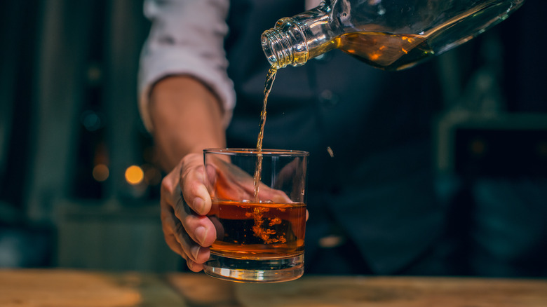 The ingredients found in whiskey deprive a person's body of water (via AcnEase), causing the skin to become dry and potentially age more quickly over time. "Hard liquor can also cause skin redness by dilating blood vessels, causing spider veins and broken capillaries, particularly around nose and cheeks area," Dr. Dimitry Rabkin, the founder of Esthetica MD, said.