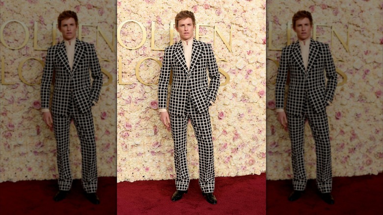 British actor and star of hit movies like "The Danish Girl," Eddie Redmayne, doesn't particularly like a plain old black suit. Many men in Hollywood prefer to go for the classic look, but Redmayne isn't one of them. He can often be seen at various events sporting loud, patterned suits. Sometimes it works, sometimes it doesn't. When he went to the 2025 Golden Globes, the star wore a bold suit by Valentino with a cream mandarin-collared shirt underneath. Redmayne told E! reporter Zuri Hall what influenced his decision to wear the monochrome number. "I'm colorblind, which is why I'm wearing black and white tonight. When I wear color, it can be a bit risqué."