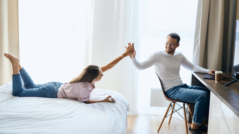 As couples therapist Irina Firstein, L.C.S.W., told Women's Health that incorporating more opportunities to touch each other into your daily routine will help keep you and your partner connected in the long run — even if it's not necessarily a romantic gesture. "Many couples are too busy to touch or feel that if they do it will lead them to sex," she explained. "And if they don't have time to get physical, they don't touch. This is a huge mistake. Touching is part of broad-based eroticism and does not have to be goal oriented, but rather a playful act between partners."