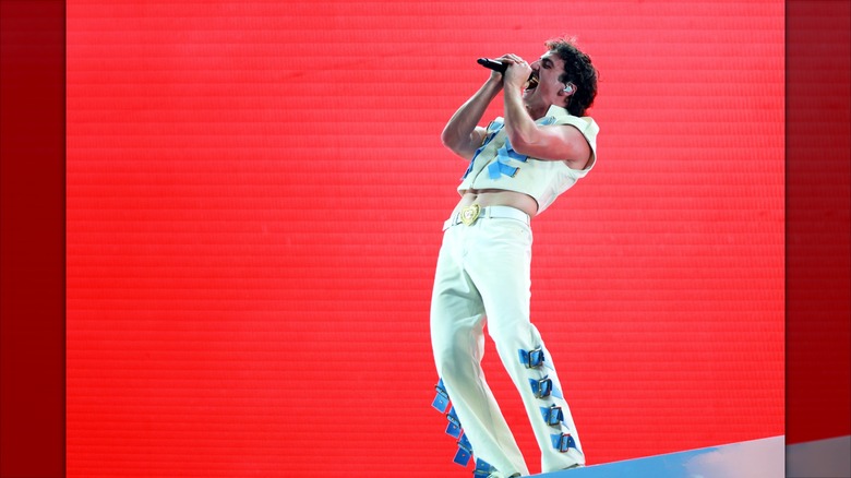 Benson Boone is known for his song "Beautiful Things," and we're pretty confident that his Coachella 2025 ensemble isn't one of those things he named the song after. His midriff-bearing white matching set was certainly unique. In truth, we wouldn't have minded this look if it weren't for the blue buckles all over his pants and shirt. The details were just plain weird and clashed with his gold belt buckle, making for a totally unfocused look.
