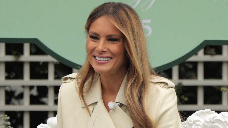 Just before Donald Trump won the 2024 presidential election, some individuals predicted that Melania Trump would live in the White House only part-time — an indication that she was, perhaps, less than enthusiastic about reprising her role as first lady. "She grits her teeth, turns her head and does what she needs to do," one insider divulged to People in November 2024. In the past, rather than giving her opinions, Melania has appeared to communicate instead with her wardrobe choices, and they've sometimes meant more than people realized. Lately, trench coats have been Melania's go-to items, and they've seemed at odds with the first lady's typically polished style, perhaps indicating that she would rather be doing other things with her time. For instance, on April 25, 2025, as she and Donald prepared to board a helicopter, Melania wore a voluminous trench coat that billowed in the breeze, basic black flats, and oversized sunglasses. The Trumps were on their way to attend Pope Francis' funeral, where Donald may be disappointed with his distant seating.