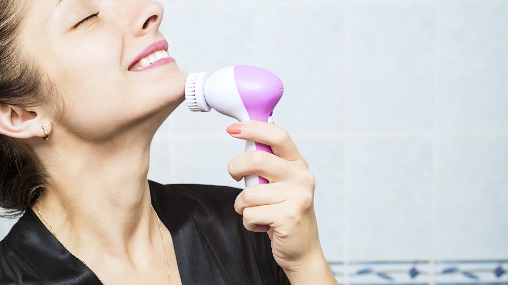 If you're breaking out a lot after using your cleansing brush, keep in mind that it needs to be cleaned and maintained to kill bacteria. Likewise, don't share it with anybody else (gross) or use it with another exfoliator, as this will irritate your skin. In a piece for Get the Gloss, medical director of The Skin Energy Clinic, Dr. Terry Loong, notes that cleansing brushes shouldn't be used by those with sensitive skin, psoriasis, eczema, broken skin, or any other skin conditions.