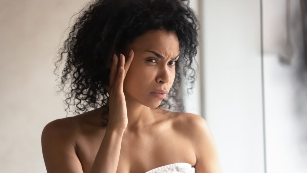 The worst thing about blackheads is that they seem to show up in the places where everyone can see them. While blackheads can appear on your face, they can also pop up on your neck, chest, shoulders, and back. You might see blackheads pop up where you sweat heavily like on or around your nose, near your hairline, or on your back. These can definitely get worse if you wear clothing or makeup over these areas (via Healthline).