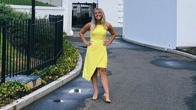 Karoline Leavitt celebrated her birthday in August 2020 with a fun, elegant ensemble. Her vibrant yellow dress was a delightful hue, and the sleeveless cut showed off her shoulders. The dress's asymmetrical hem accentuated its appeal. "i wish i could look this cute for work!!!" proclaimed an enthusiastic Instagram fan. Once again, Leavitt relied on the leg-accentuating technique by pulling out her neutral high heels. While she was happily celebrating working at the White House, Leavitt had to find a new job after Donald Trump lost the 2020 election.